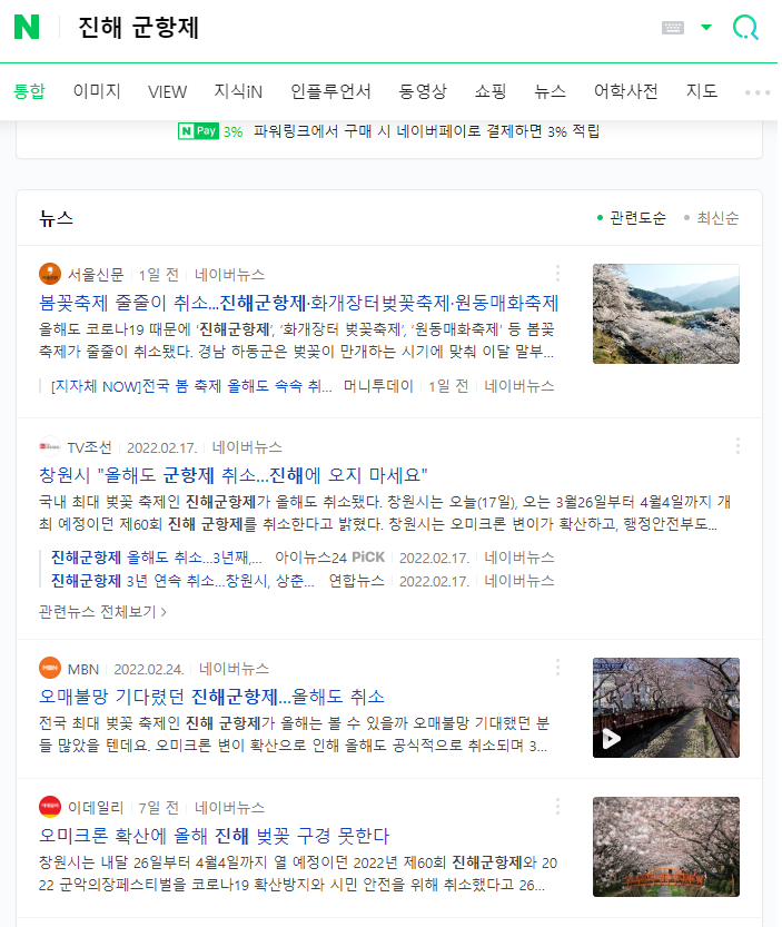 가까운 진해부터 해서 벚꽃 나들이를 가보려고 했는데요